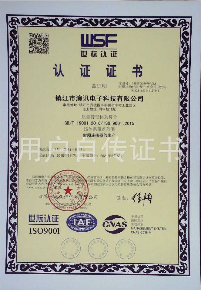 鎮(zhèn)江市澳訊電子科技有限公司,占地面積5000平方米,現(xiàn)有員工近百名,各類(lèi)技術(shù)人員占15%。我公司專(zhuān)業(yè)從事射頻同軸連接器的設(shè)計(jì)、研制、開(kāi)發(fā)、生產(chǎn)、銷(xiāo)售。